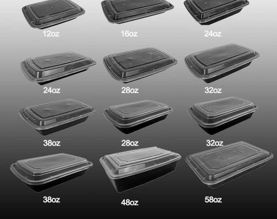 Take Out Black Rectangle Round Disposable Plastic Microwavable Meal Prep Food Container